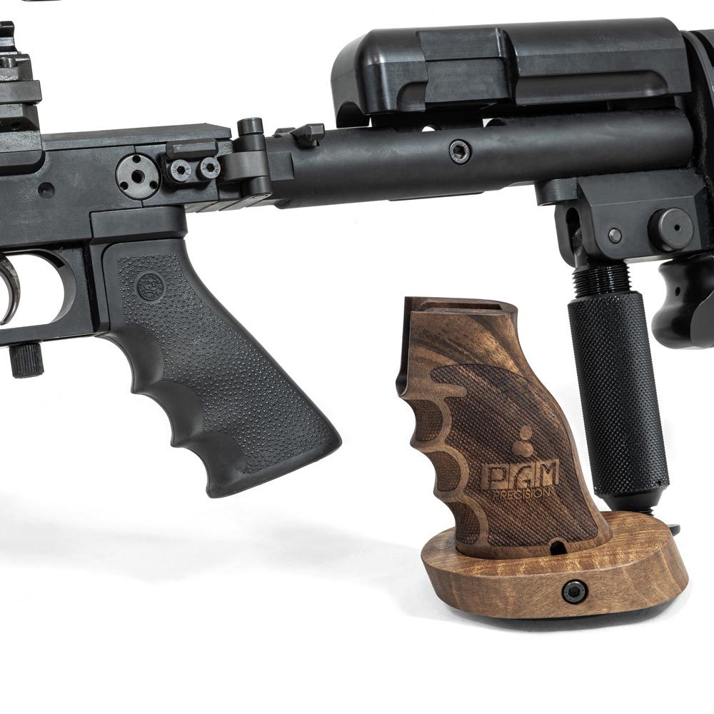 The first versions of the Hécate II were equipped with a fixed wooden grip. PGM Précision offers you the option of adapting your Hécate II to the AR-15 interface, which is standard for pistol grips.